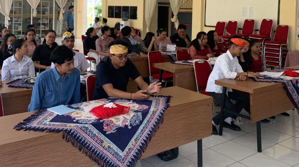 Salah satu bagian menarik dari sesi pembelajaran ini adalah pelurusan pandangan masyarakat tentang makna sesajen (banten). Narasumber menjelaskan bahwa sesajen bukanlah bentuk penyembahan terhadap benda atau alam, melainkan ungkapan syukur kepada Ida Sang Hyang Widhi Wasa (Tuhan Yang Maha Esa) atas berkat dan karunia-Nya yang termanifestasi dalam alam semesta. Penjelasan ini membantu mahasiswa melihat bahwa praktik spiritual Hindu berpusat pada pemujaan kepada Tuhan Yang Maha Esa, bukan pada pemujaan terhadap objek duniawi.